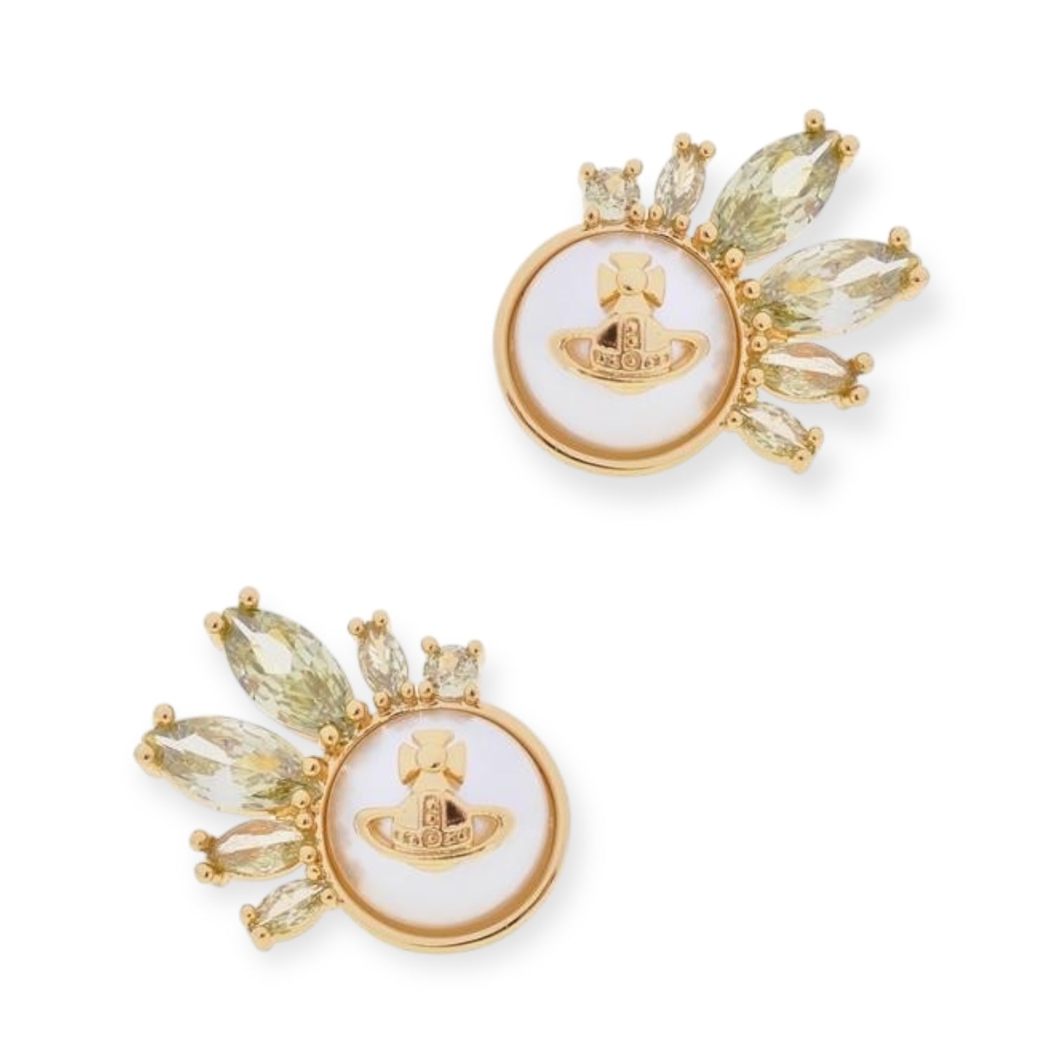 2D Pearl Orb Pendant Hanging Crystal Shards Design Stud Earrings (3 Colors)