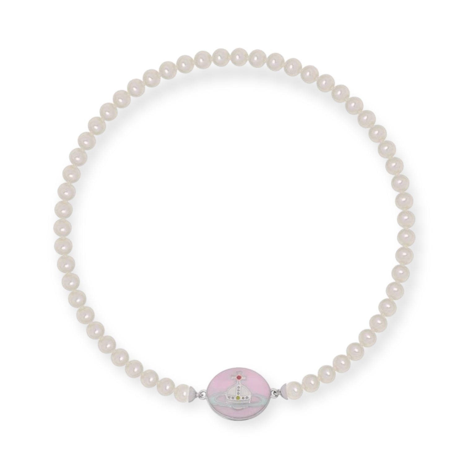 Beaded Pearl Chain Orb Engraved Pendant Magnetic Clasp Choker Necklace (4 Colors)