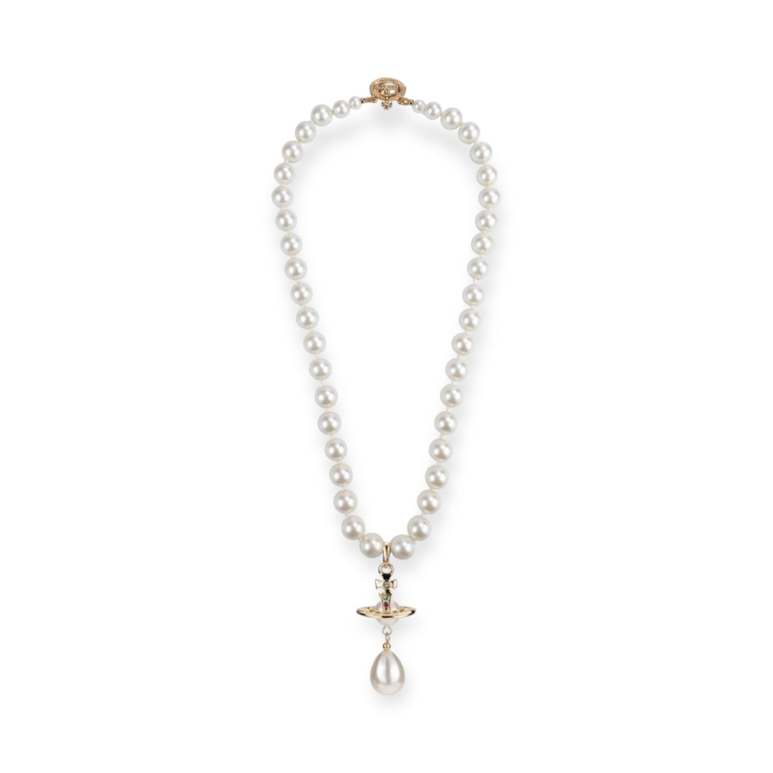 Beaded Tear Drop Pearl Orb Pendant Necklace Gold & Silver (2 colors)