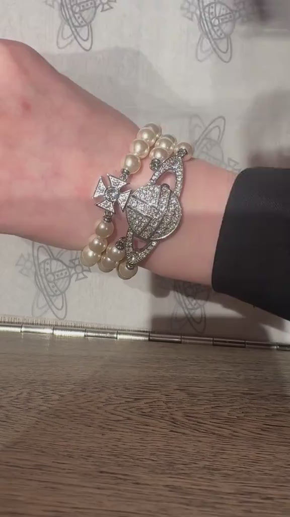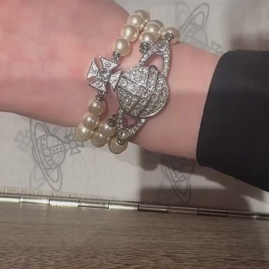 Beaded Pearl Strand Triple Layer Gem Orb Watch