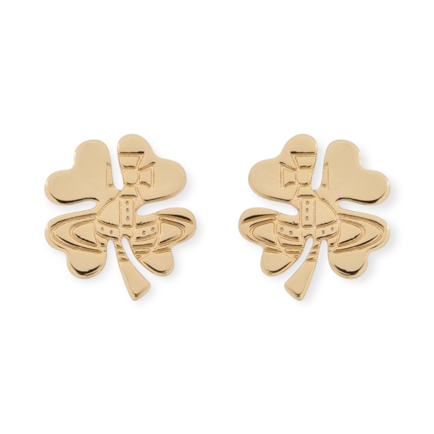 Clover Staple Engraved Orb Pendant Gold & Silver Stud Earrings (2 Colors)