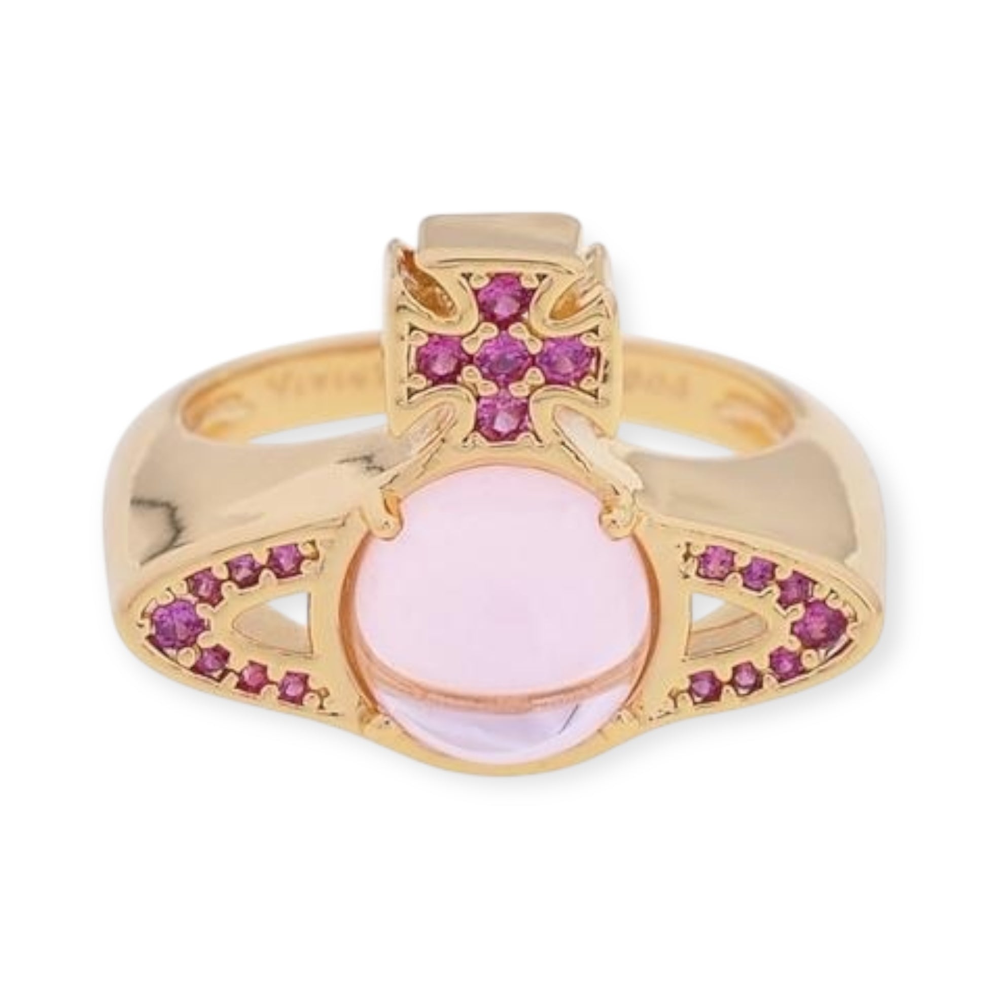 Colorful Studded Gem Orb Pendant Ring (4 Colors)