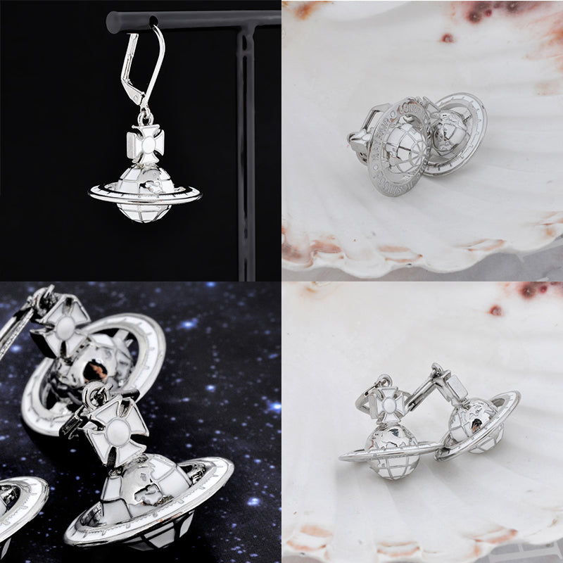 Earth Globe Abstract Design Orb Pendant Hanging Earrings (4 Colors)