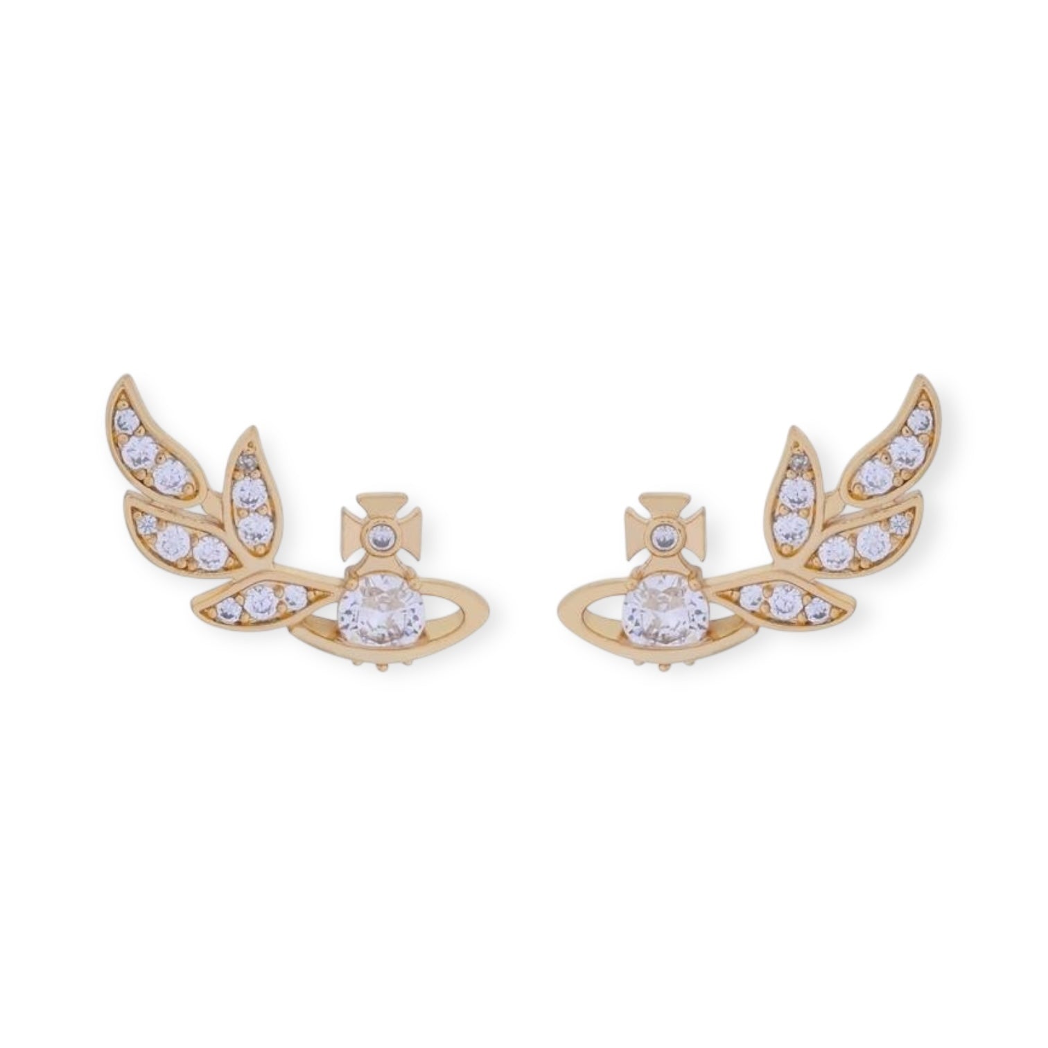 Flower Studded Leaves Wings Mini Gem Orb Pendant Earrings (4 Colors)