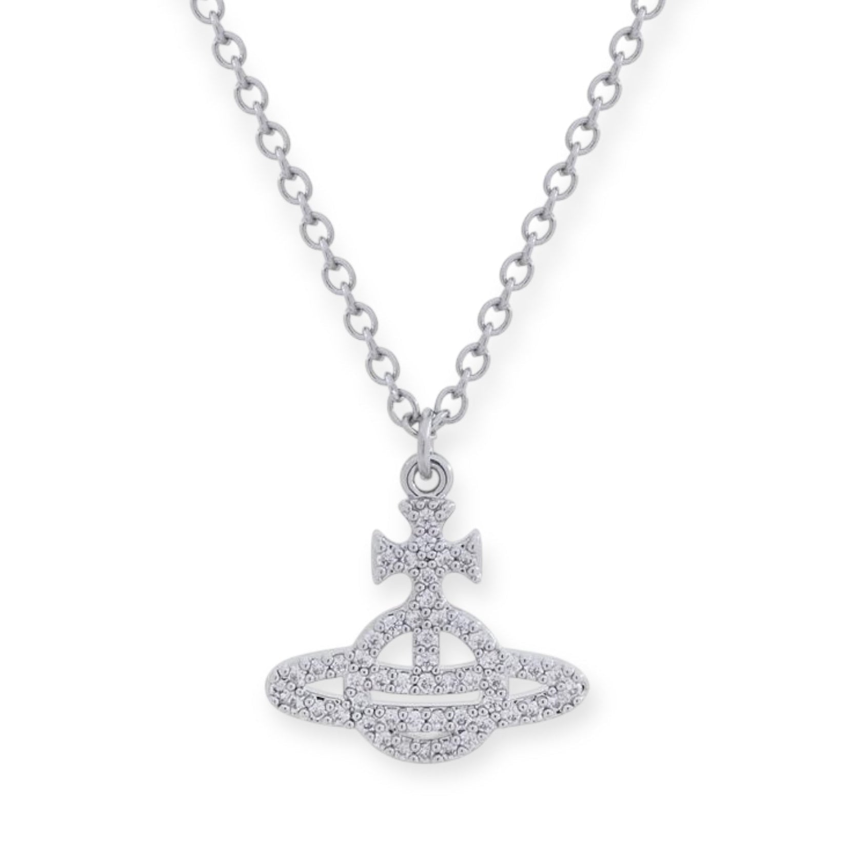 Gem Studded Encrusted Outline Orb Pendant Necklace