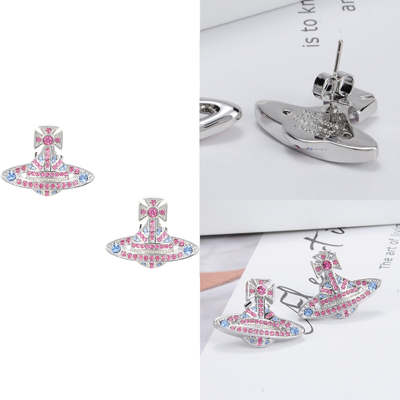Gem Studded Union Jack Orb Pendant Earrings (6 Colors)