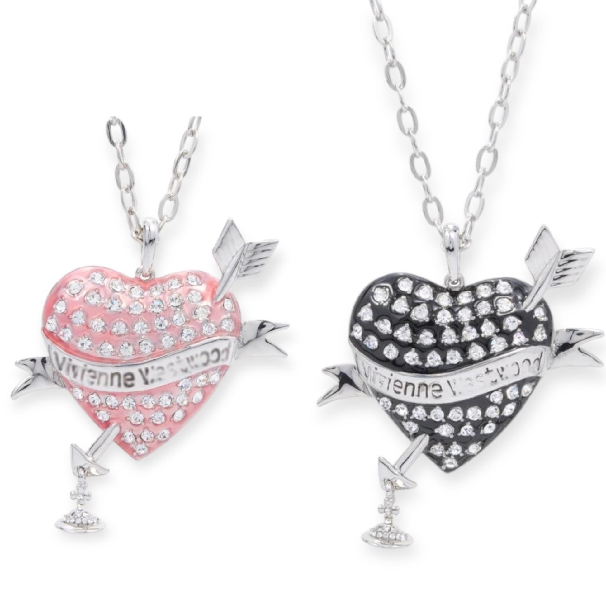 Heart Arrow Gem Studded Pendant Necklace Pink & Black (2 Colors)