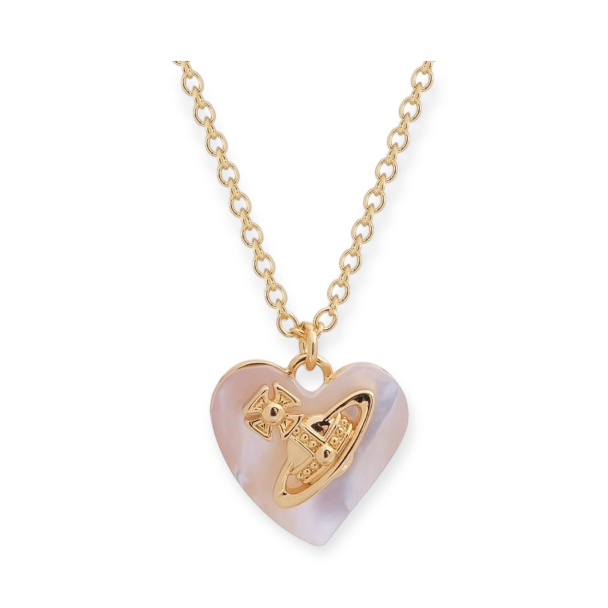 Heart Shaped Iridescent Stone Engraved Orb Necklace (4 Colors)