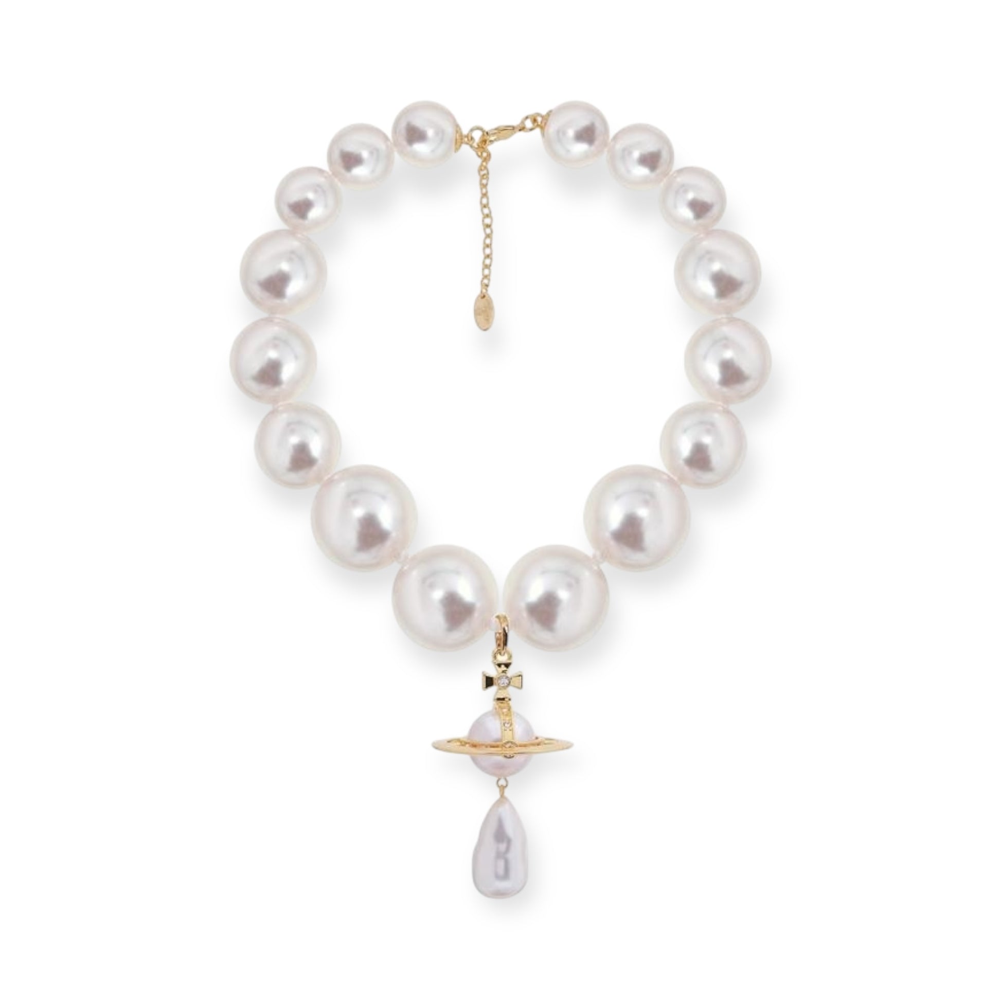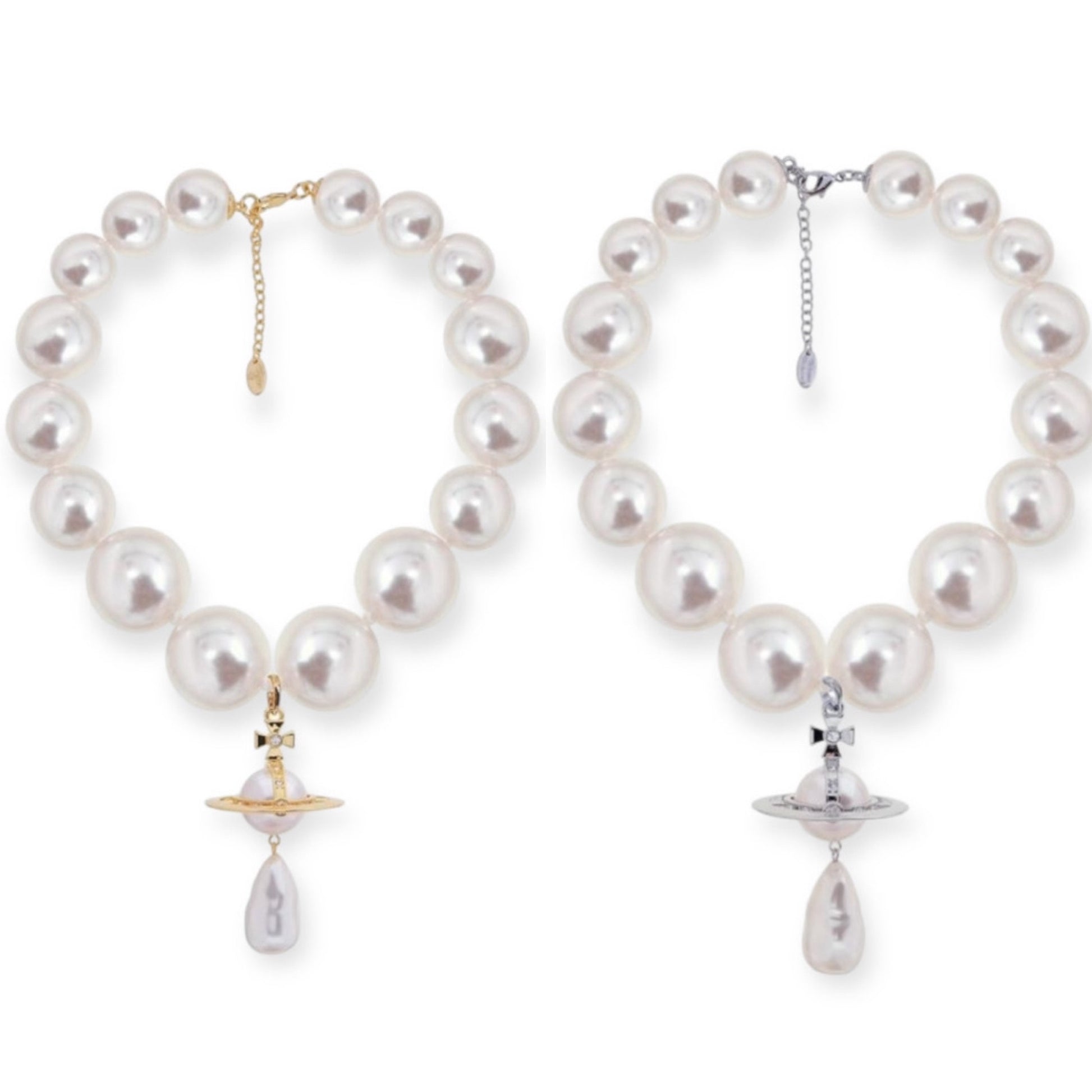 Jumbo Pearl Choker Tear Drop Orb Pendant Necklace Gold & Silver (2 Colors)