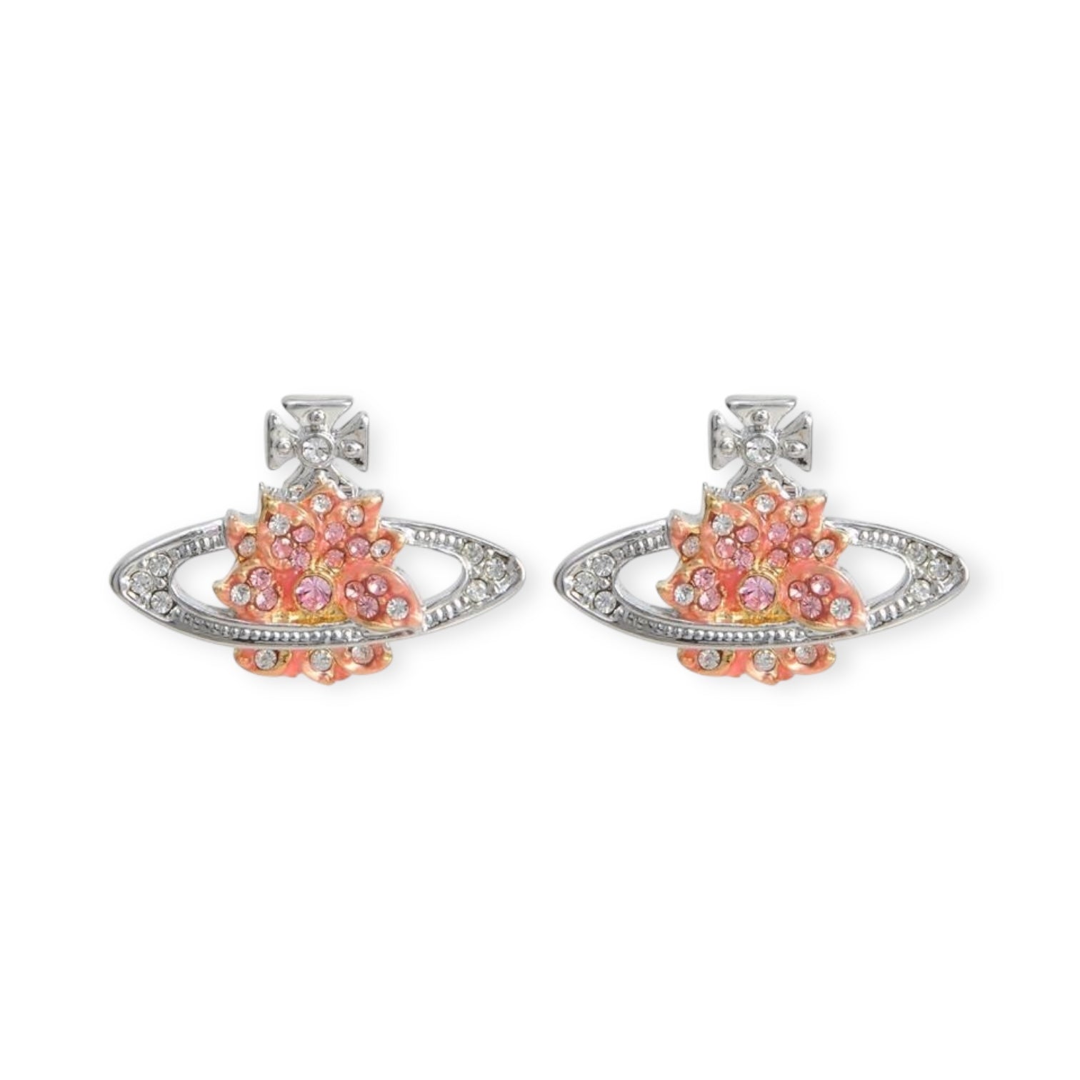 Lotus Flower Design Crystal Pendant Earrings Orange & Silver (2 Colors)