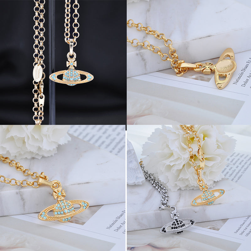 Mini Gem Studded 10MM Orb Pendant Necklace (7 Colors)
