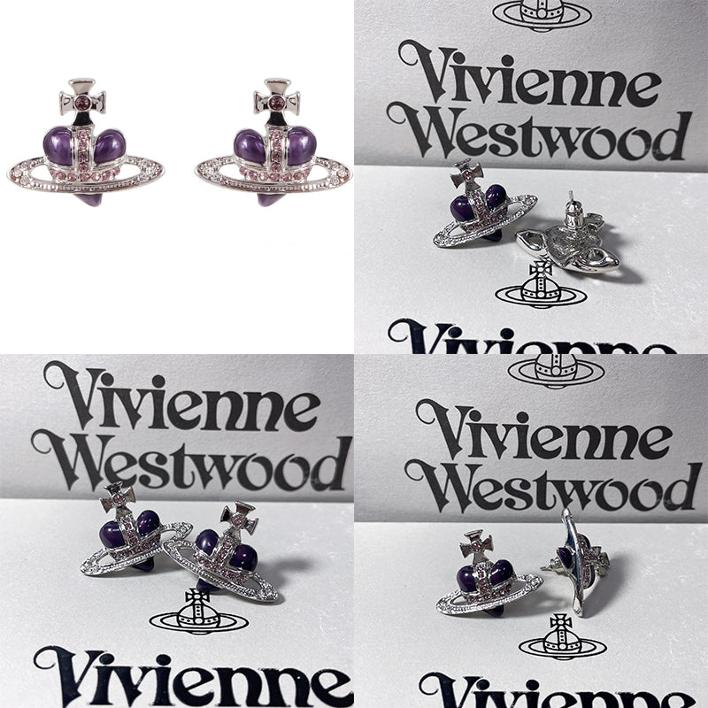 Mini Heart Orb Design Silver Earrings (5 Colors)