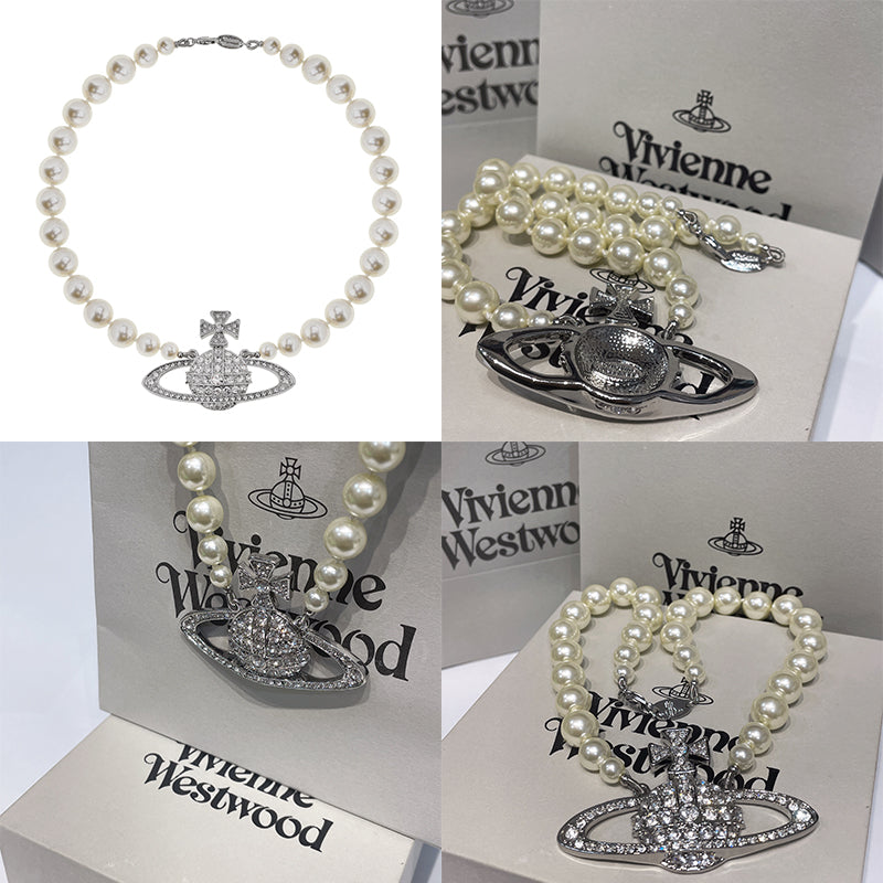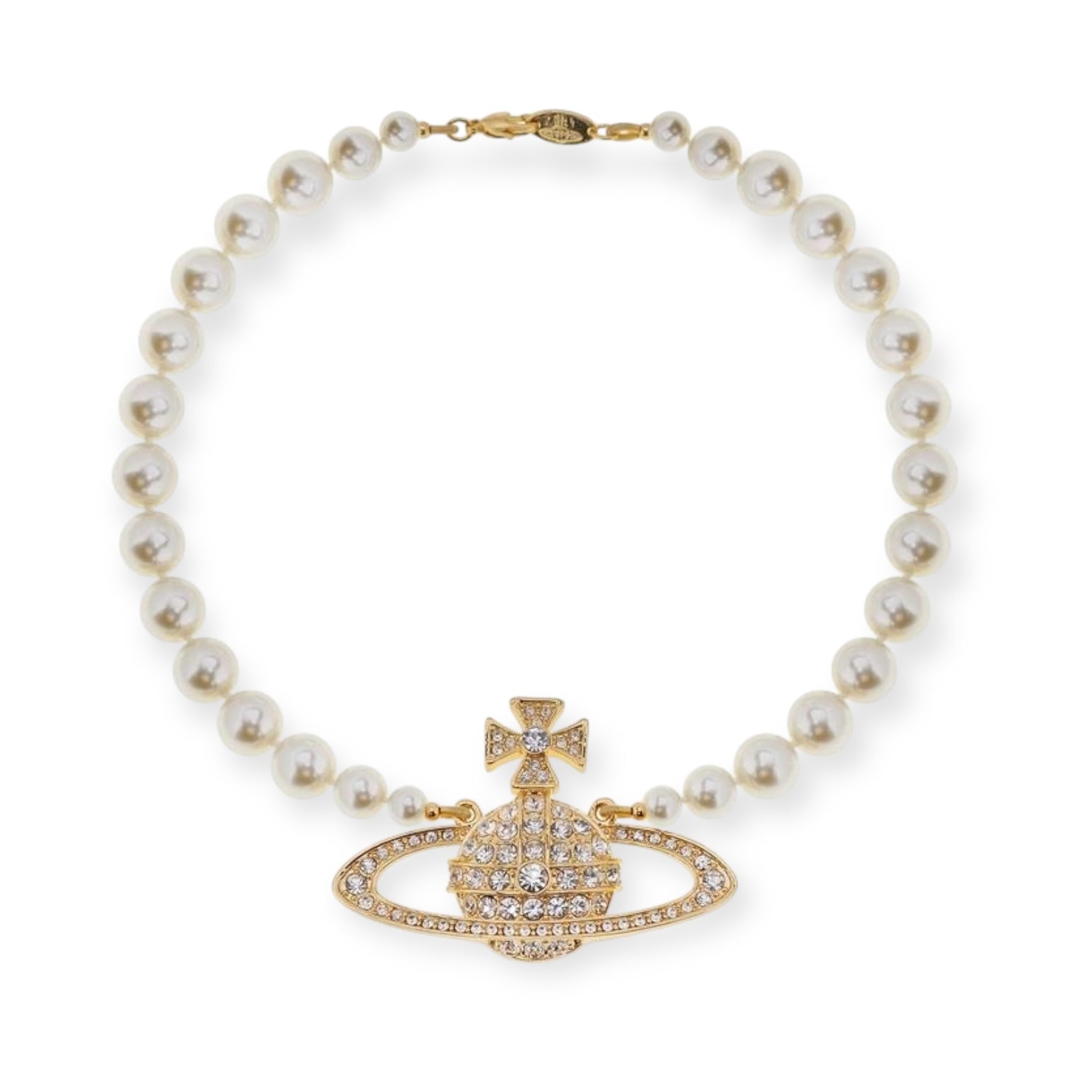 Pearl Gem Studded Orb Pendant Choker Necklace Gold & Silver (2 Colors)