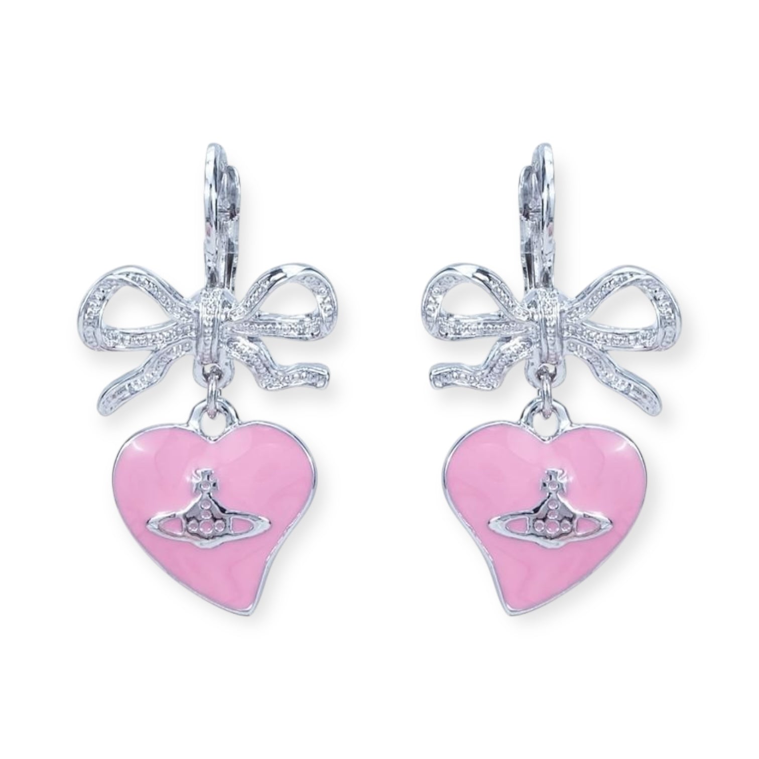 Heart Shaped Gem Studded Orb Pendant Earrings (2 Colors)