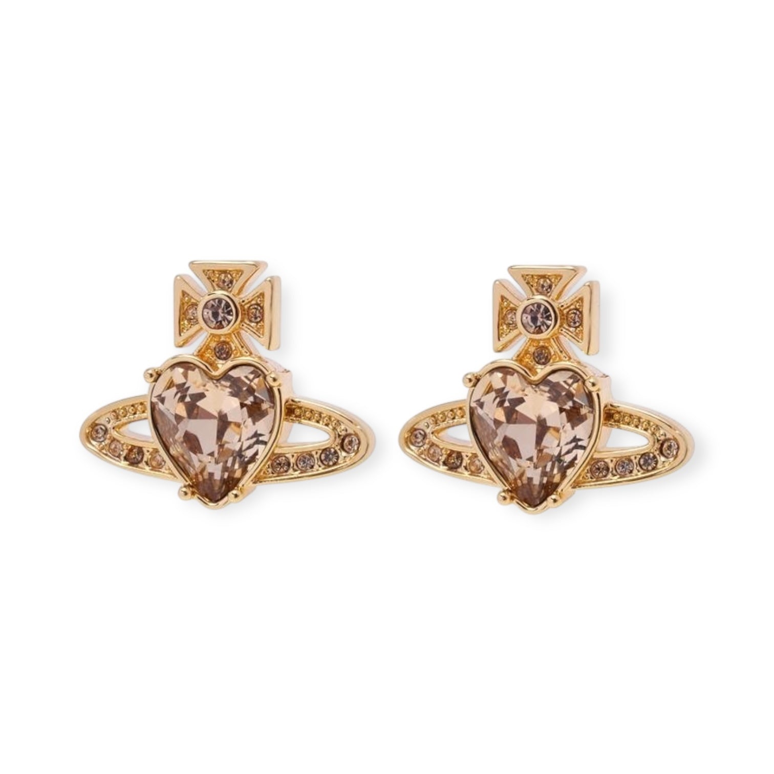 Princess Heart Shaped Gemstone Studded Orb 2D Pendant Earrings (5 Colors)