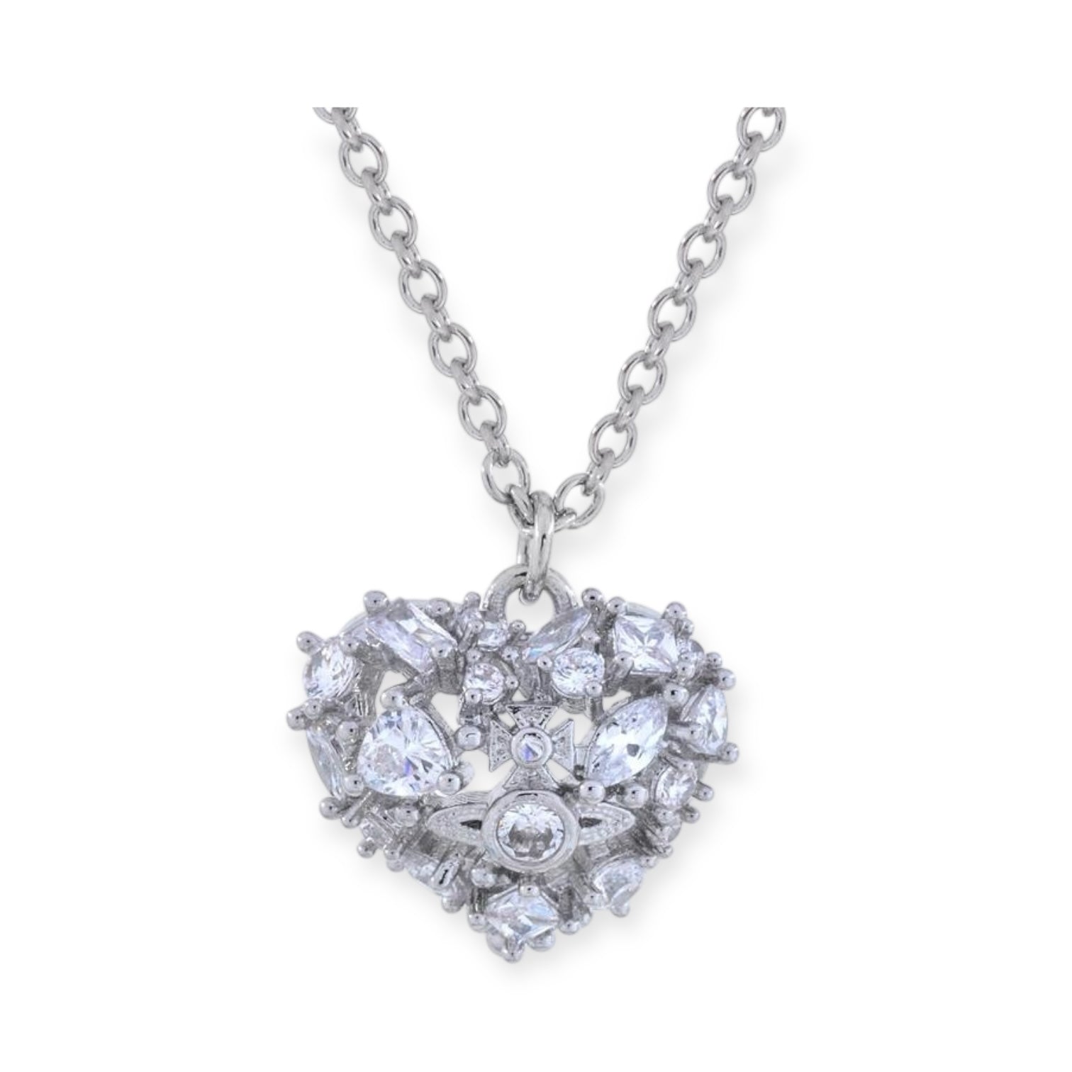 Rhinestone Abstract Heart Design Orb Silver Pendant Necklace