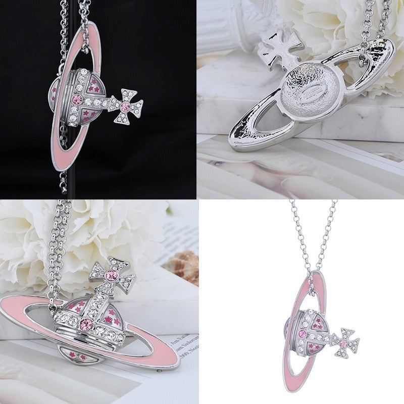 Sideways Hanging Colorful Orb Saturn Necklace (3 colors)