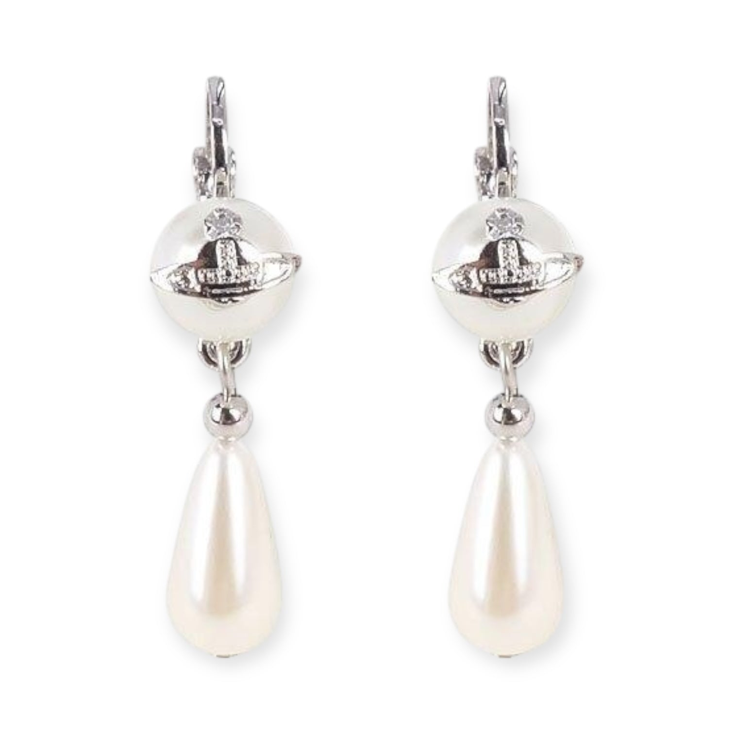 Silver Orb Pendant Ball Hanging Pearl Tear Drop Earrings (2 Colors)