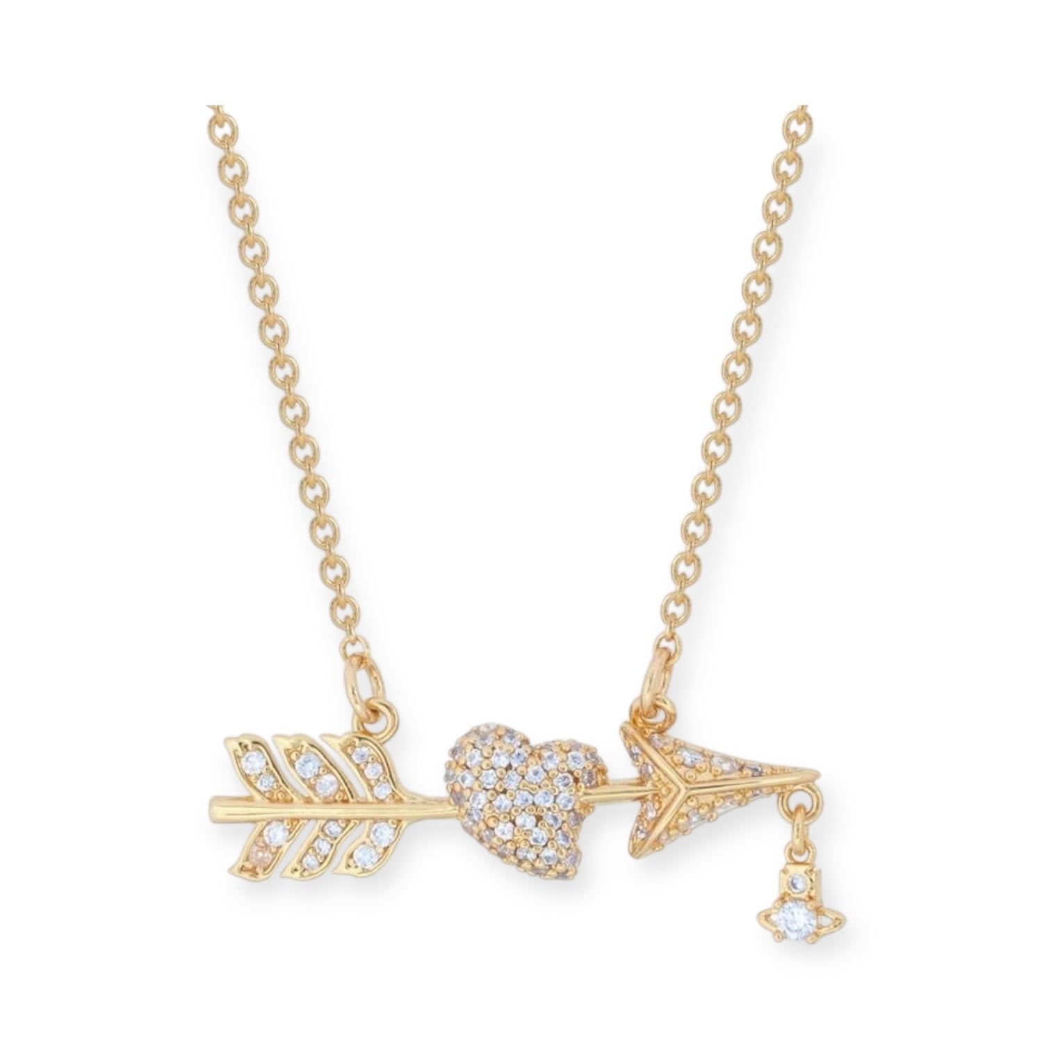 Studded Cupid Heart Arrow Design Hanging Orb Pendant Necklace (3 Colors)