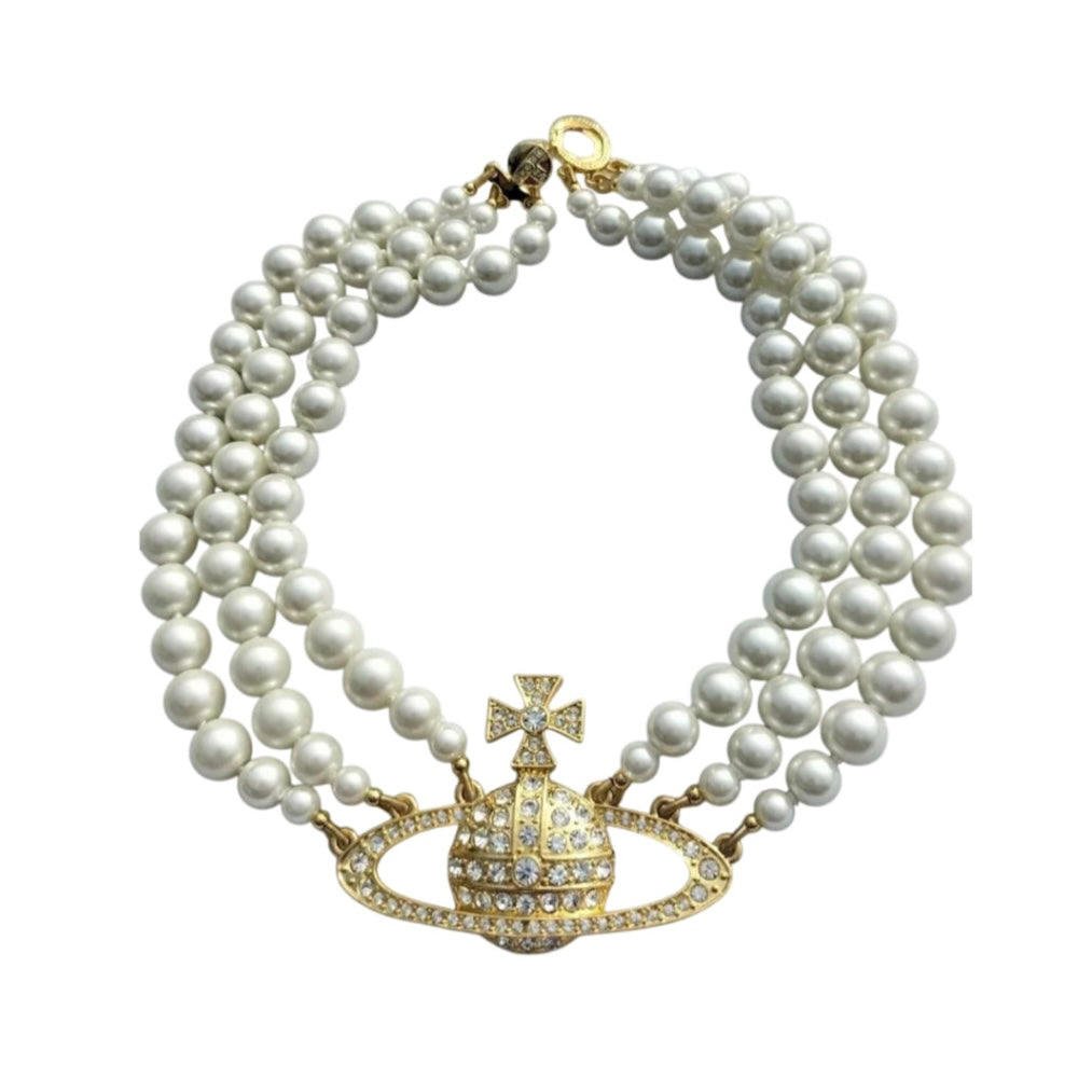 Triple Layer Beaded Orb Pendant Necklace Gold & Silver (2 colors)