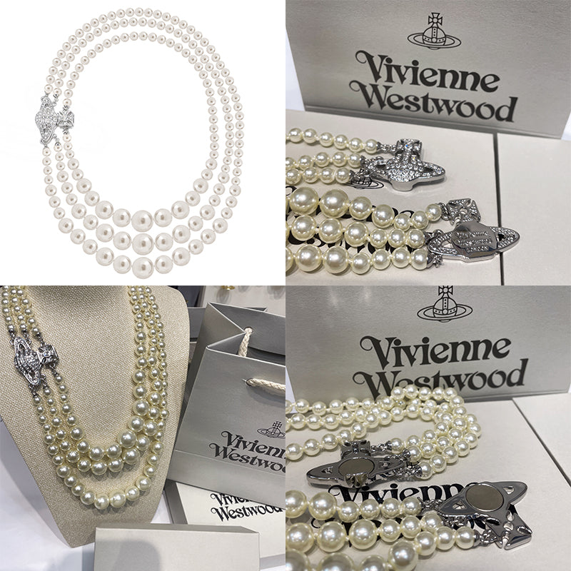 Triple Layer Pearl Sideways Magnet Clasp Gem Studded Orb Pendant Necklace Gold & Silver (2 Colors)